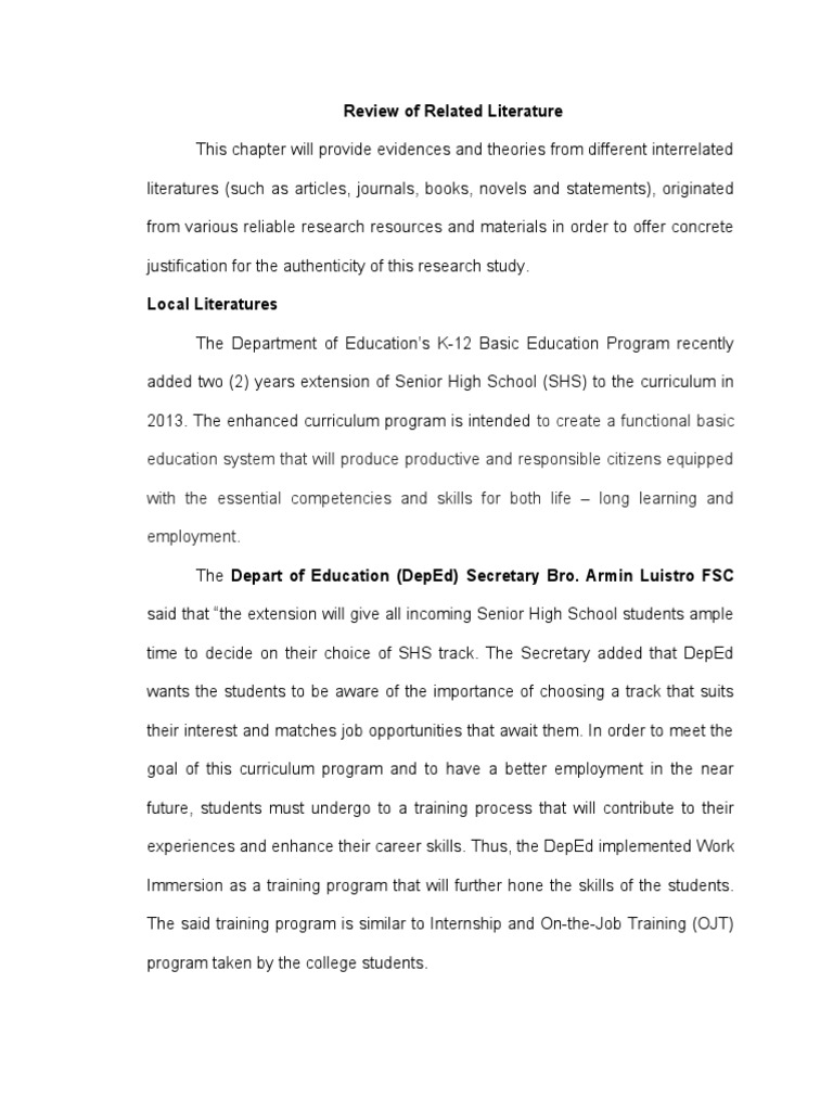 way, testing the effectiveness of Work Immersion, internship and On-the-Job
