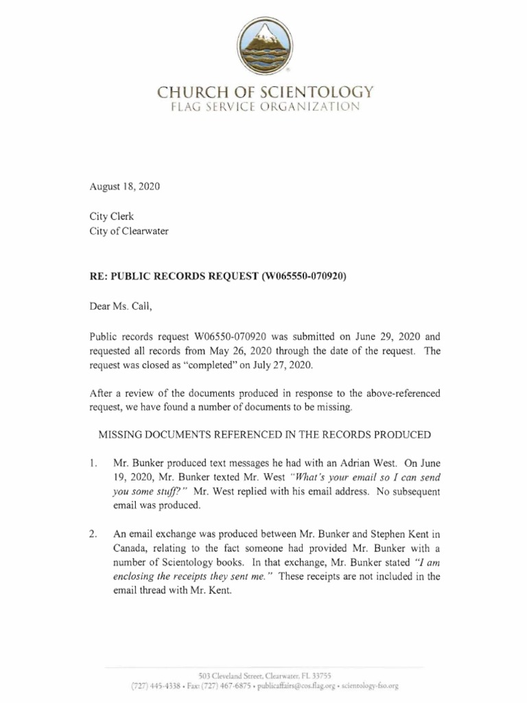 help retrieving them. In that email, he attached Scientology's most recent request from Flag Service Organization secretary Glen Stilo.