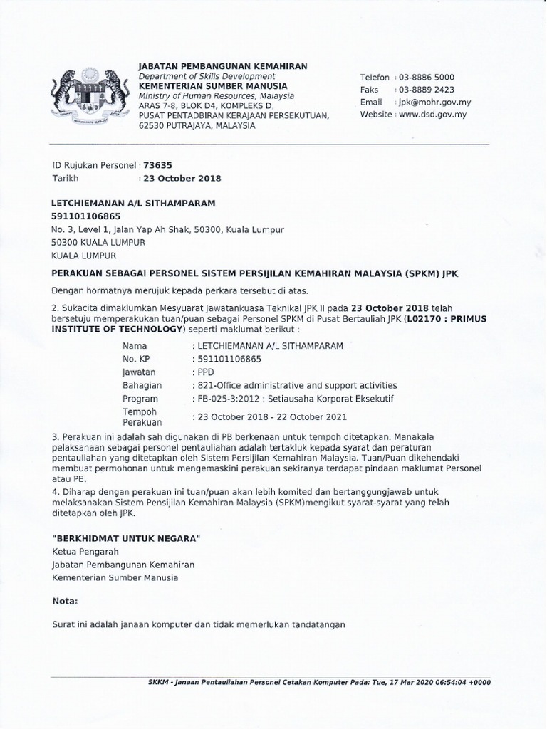 ‘SKKM = Janaan Pentauliahan Personel Cetakan Komputer Padai Tue, 17 Mar 2020 [Link] +0000