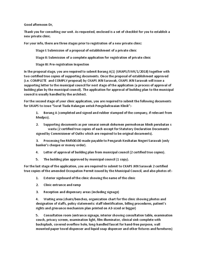 for UKAPS to issue “Surat Tiada Halangan untuk Pengubahsuaian Klinik”:-