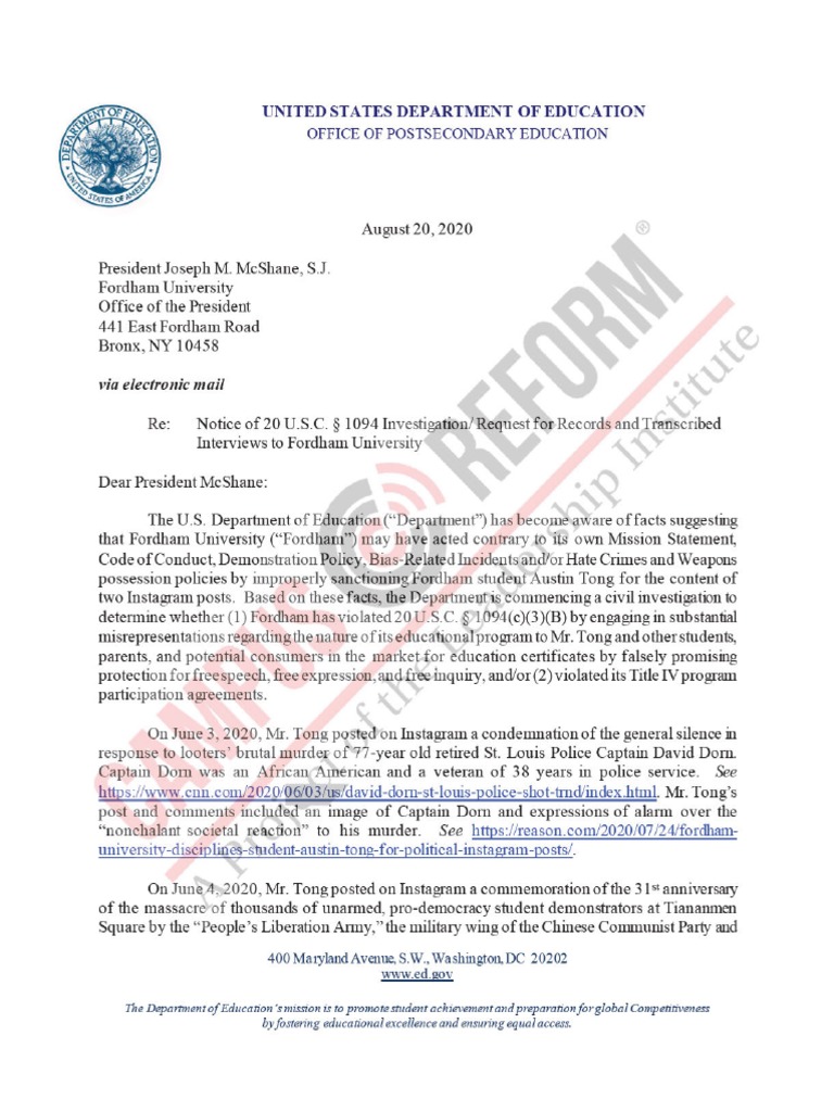 Fordham Letter