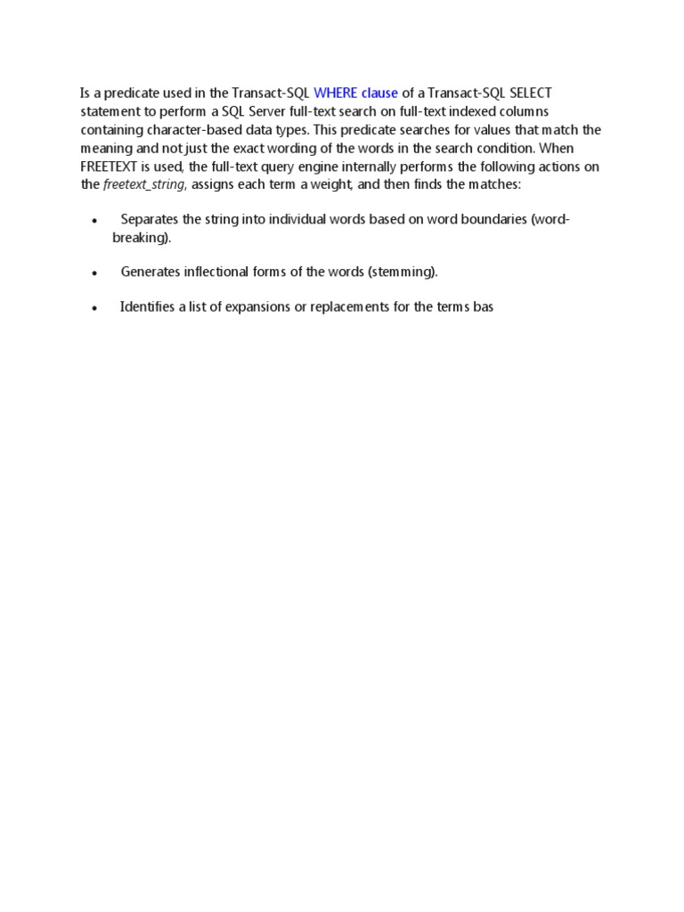 FREETEXT is used, the full-text query engine internally performs the following actions on