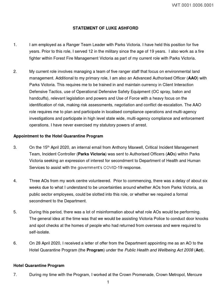 STATEMENT OF LUKE ASHFORD