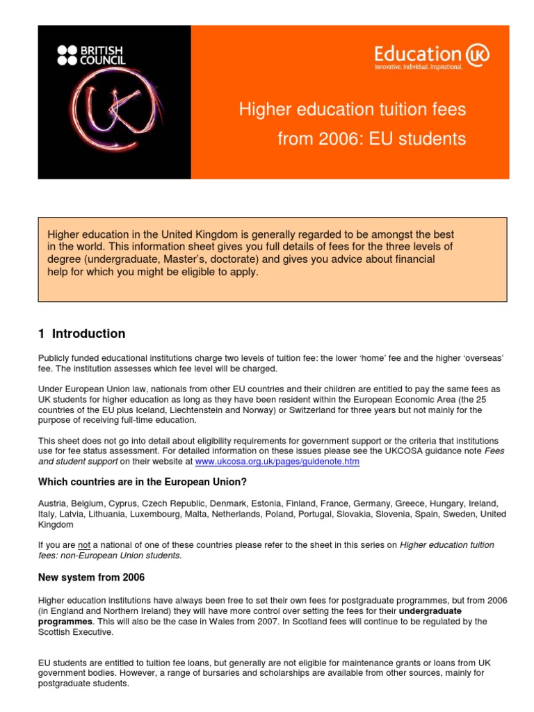 Higher education tuition fees from 2006: EU students [Link] 1