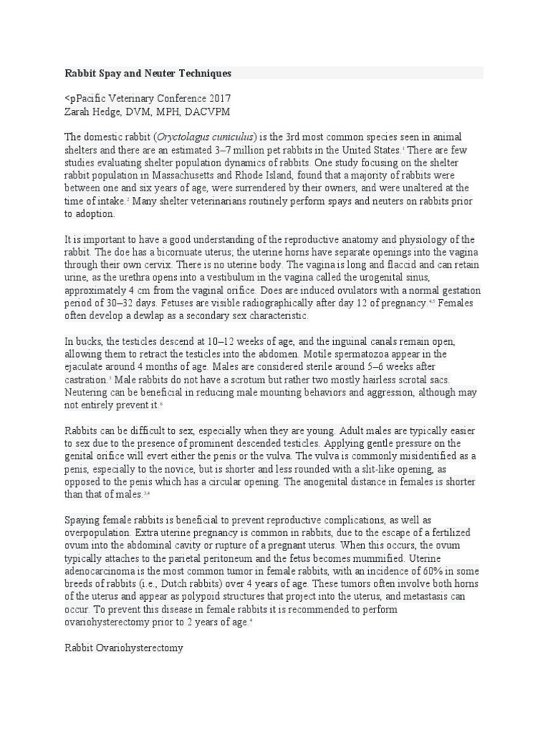 Rabbit Spay and Neuter Techniques