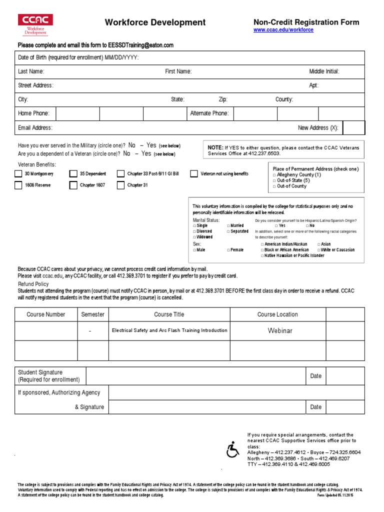 Workforce Development Non-Credit Registration Form