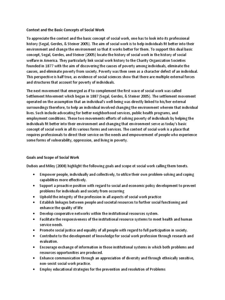 To appreciate the context and the basic concept of social work, one has to look into its professional
