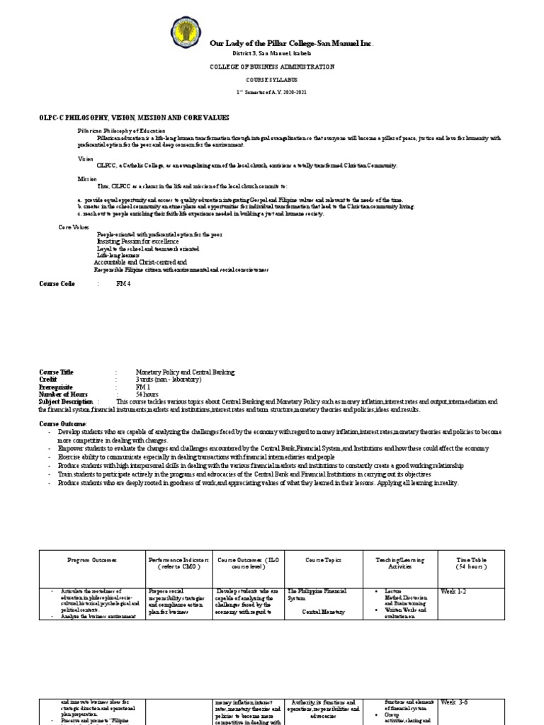Course Title : Monetary Policy and Central Banking