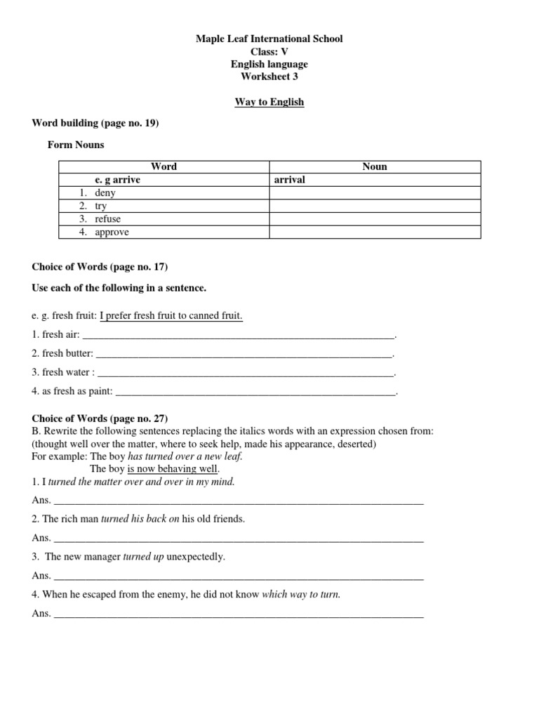 B. Rewrite the following sentences replacing the italics words with an expression chosen from: