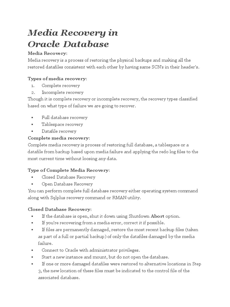 as part of a full or partial backup) of only the datafiles damaged by the media