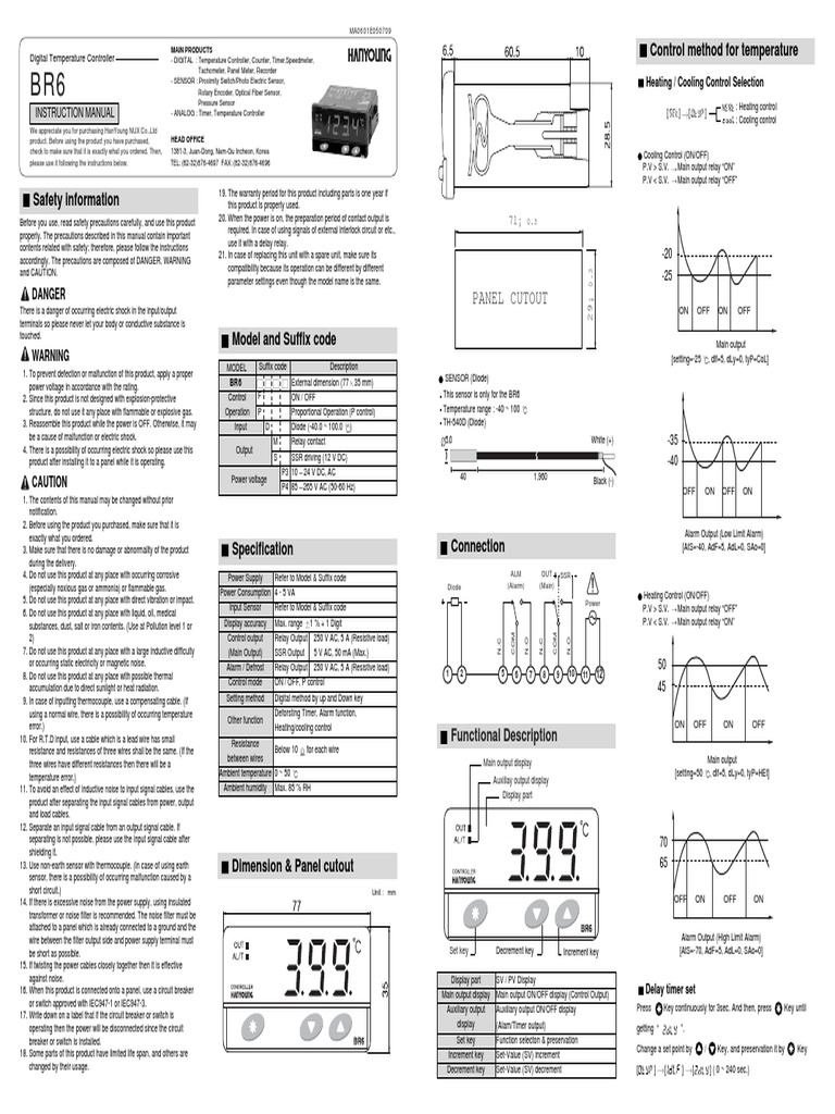 6. Do not use this product at any place with liquid, oil, medical Input Sensor Refer to Model & Suffix code P.V > S.V. Main output relay “OFF”