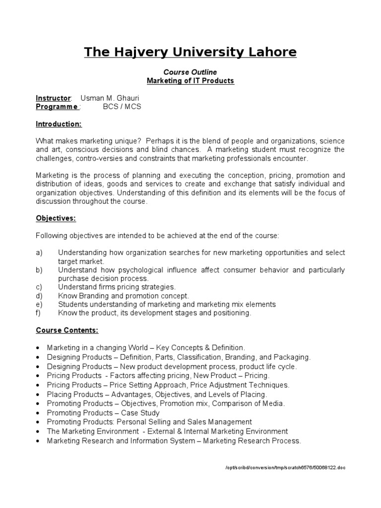 and art, conscious decisions and blind chances. A marketing student must recognize the