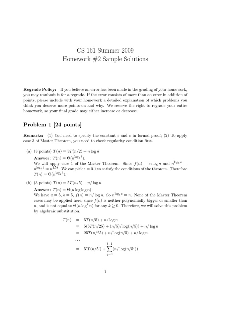 (a) (3 points) T (n) = 3T (n/2) + n log n