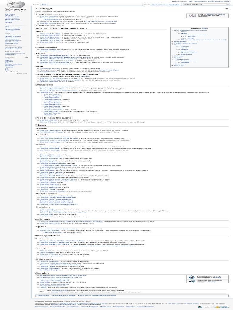 Random article Orange (fruit), the fruit of the tree species Citrus × sinensis