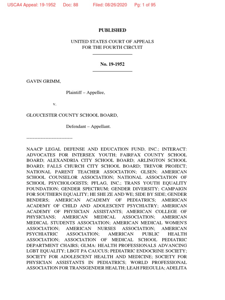 him as a transgender male to use the boys restrooms at Gloucester County High School.