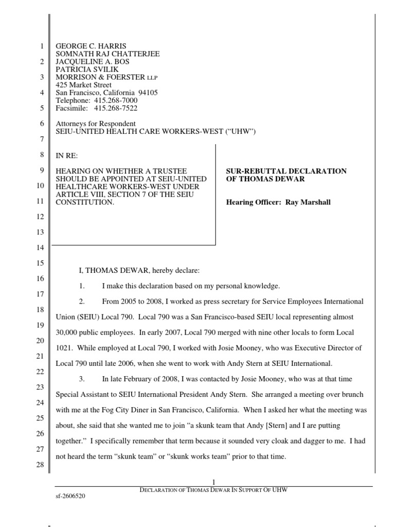 Sur-Rebuttal Declaration of Thomas Dewar: D T D I S O UHW sf-2606520