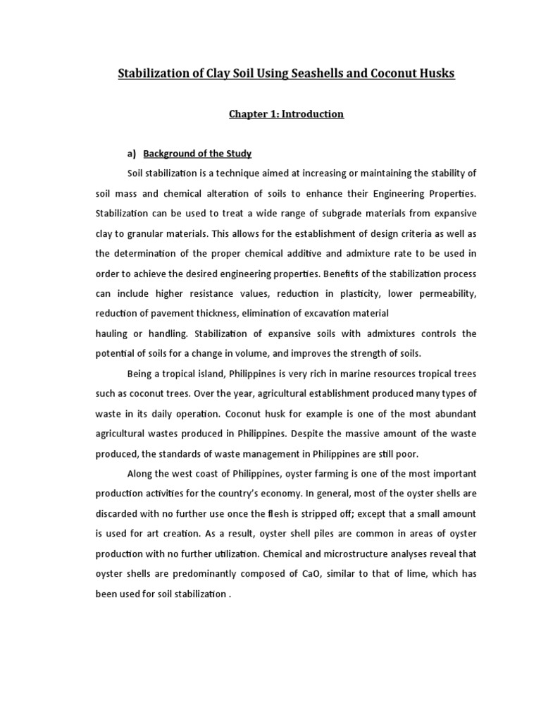 This study focuses on the utilization of seashells and coconut husks in soil