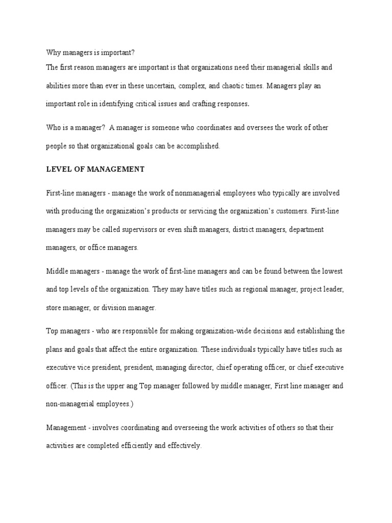 officer. (This is the upper ang Top manager followed by middle manager, First line manager and