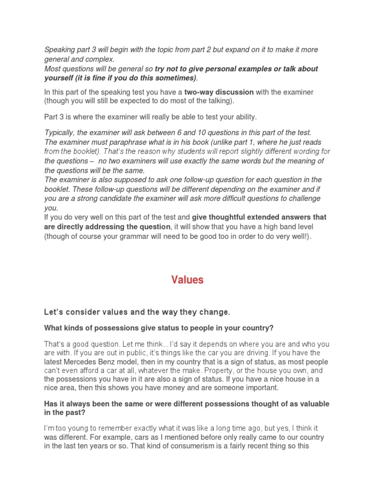 Speaking part 3 will begin with the topic from part 2 but expand on it to make it more