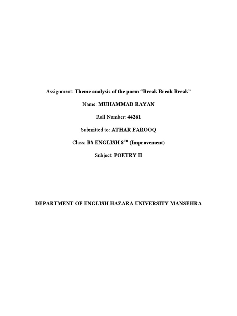 Assignment: Theme analysis of the poem “Break Break Break”