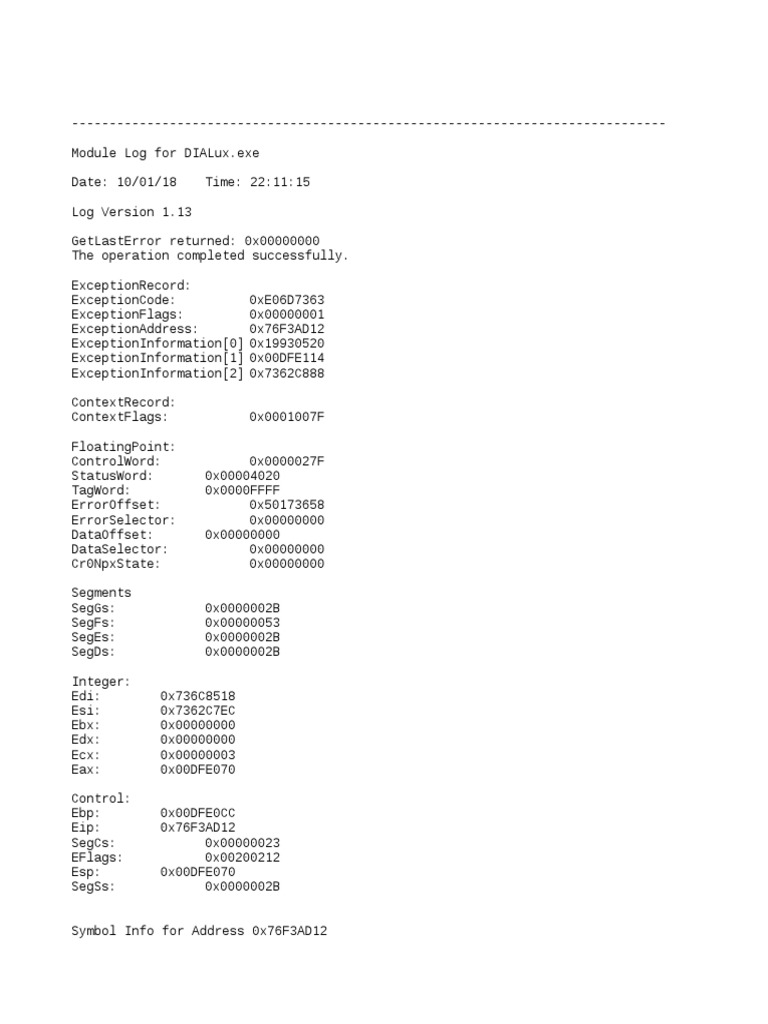 0x7530AD12 0x73D4872D 0xE06D7363 0x00000001 0x00000003 0x017FE990 KERNELBASE.dll
