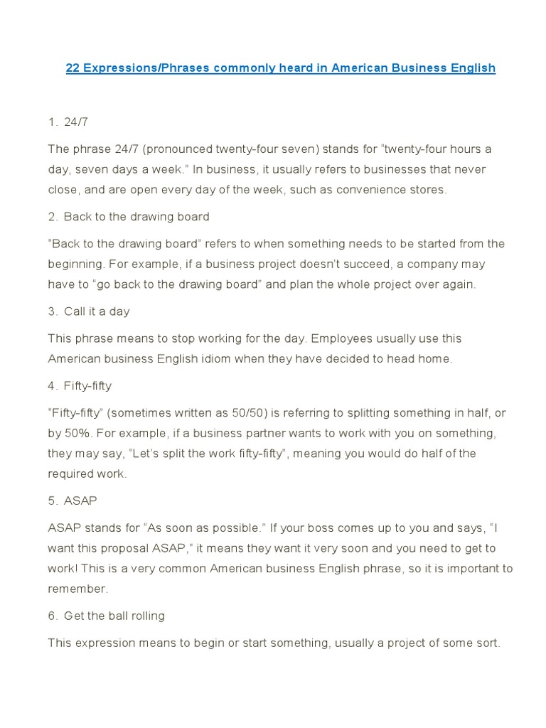 22 Expressions/Phrases commonly heard in American Business English
