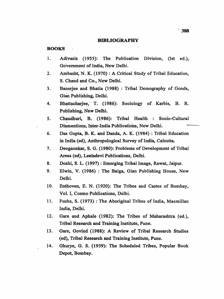 14. Ghurye, G. S. (1959): The Scheduled Tribes, Popular Book