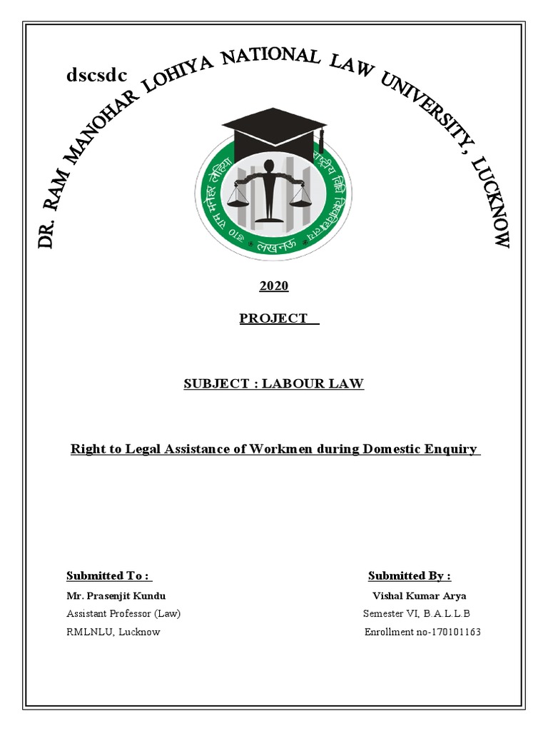 Right to Legal Assistance of Workmen during Domestic Enquiry