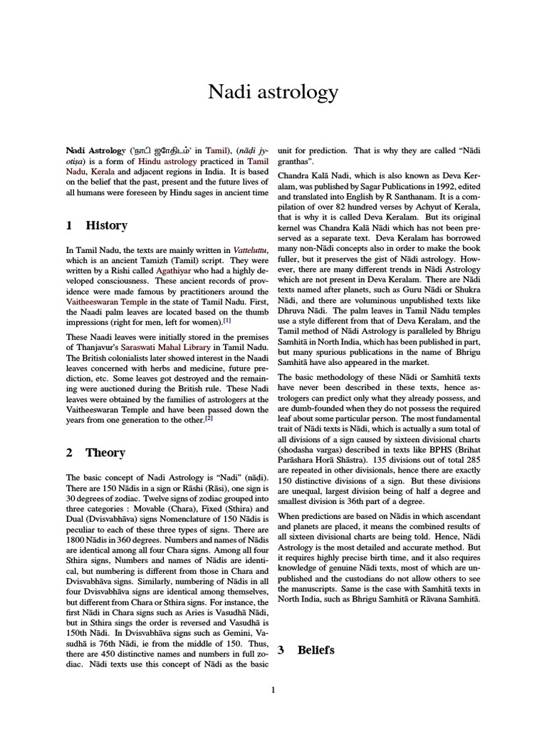 Nadi Astrology ('நாடி ஜோதிடம்' in Tamil), (nāḍi jy- unit for prediction. That is why they are called “Nādi