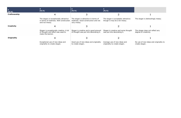 Originality 4 3 2 1