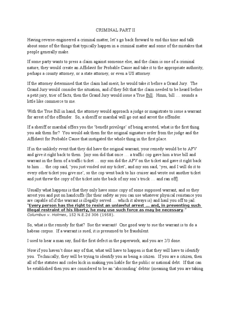 warrant in the form of a traffic ticket … my son did the AFV on the ticket and gave it right back