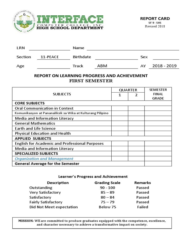 REPORT ON LEARNING PROGRESS AND ACHIEVEMENT