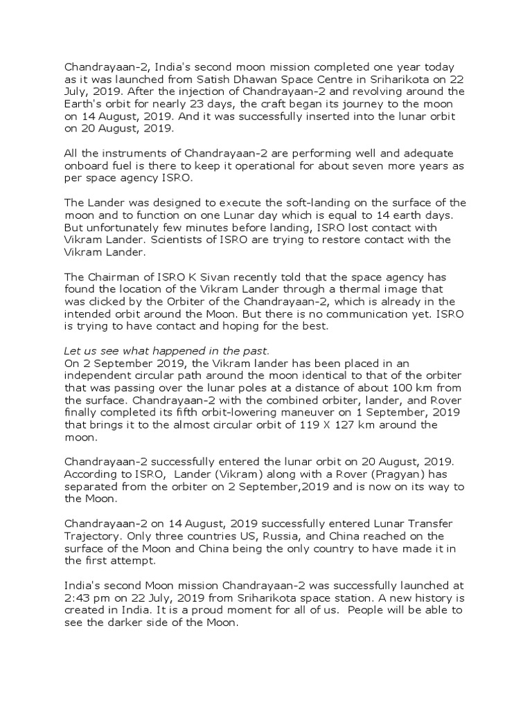 Chandrayaan-2, India's second moon mission completed one year today
