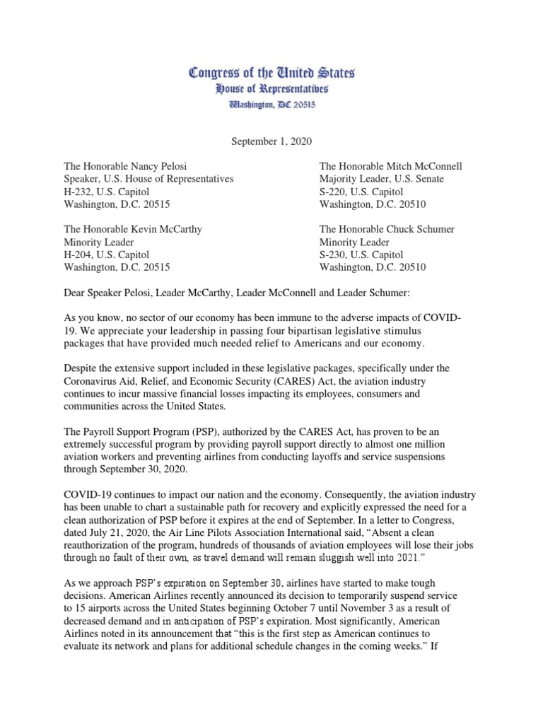 9.1.20 Letter To Leadership On Payroll Support Program Letter PDF