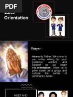 topics which the class adviser can do or discuss during the orientation.