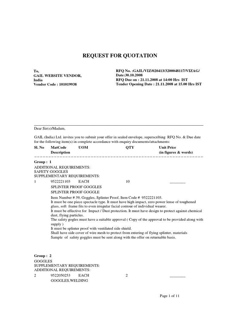 RFQ No:GAIL/VIZ/020413/3200048117/VIZAG/