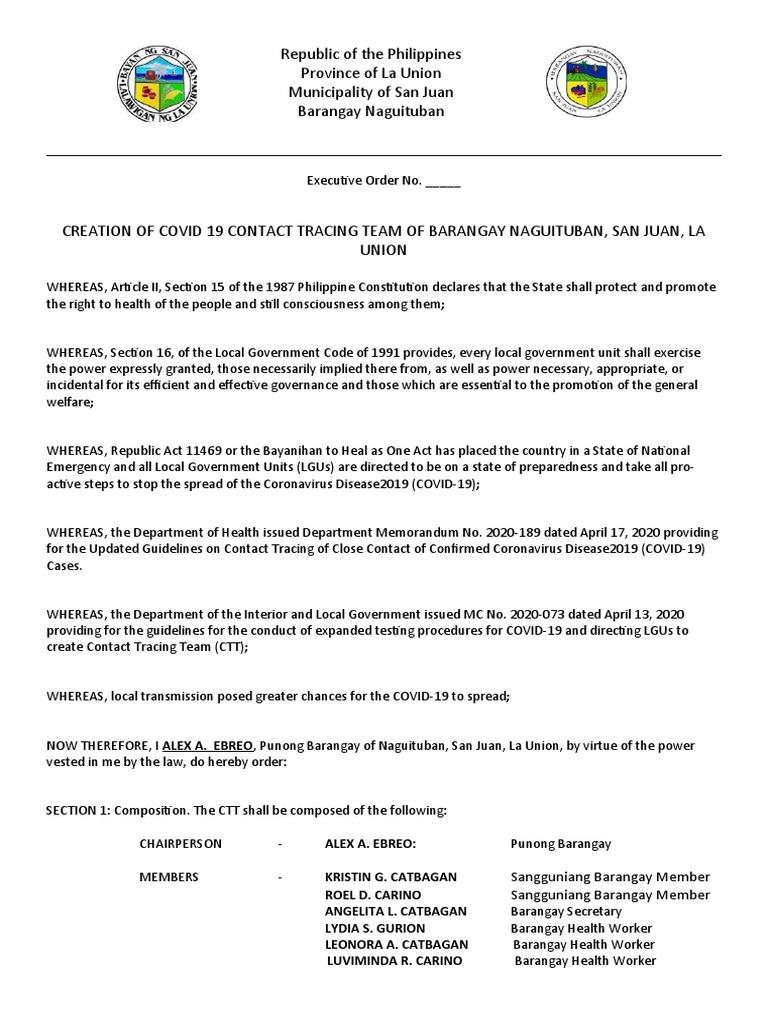 CREATION OF COVID 19 CONTACT TRACING TEAM OF BARANGAY NAGUITUBAN, SAN JUAN, LA
