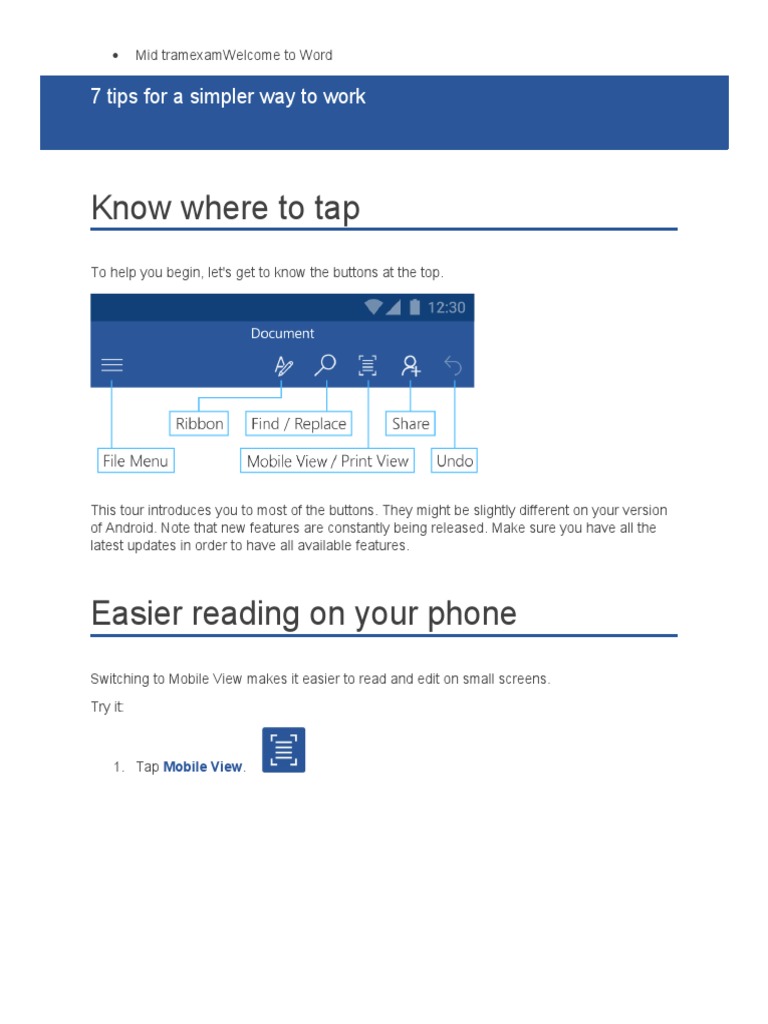 1. Tap somewhere in this paragraph, and then open the ribbon
