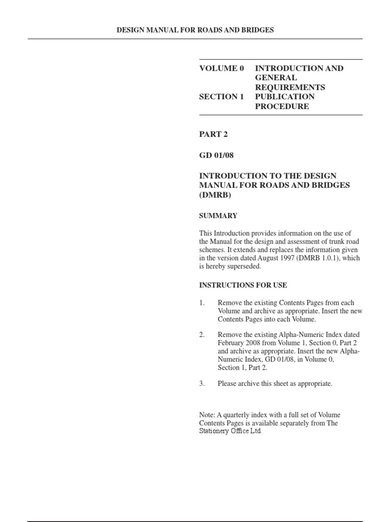 1.1 The “Design Manual for Roads and Bridges” authority in Scotland and Northern Ireland) to decide