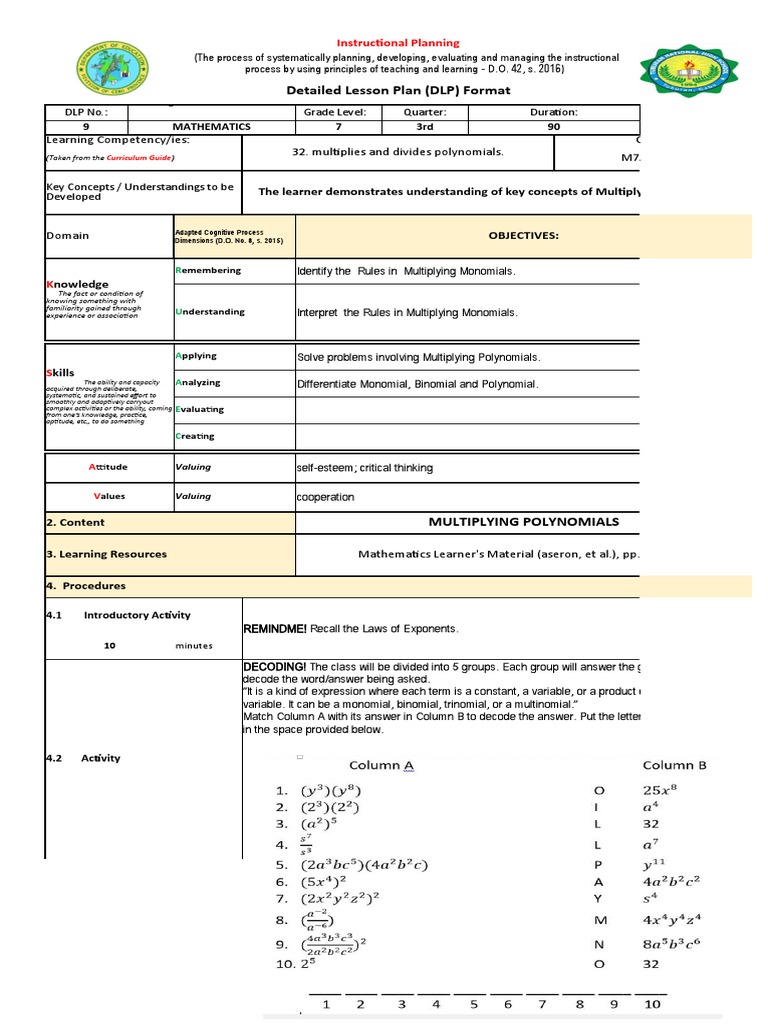 Developed The learner demonstrates understanding of key concepts of Multiplying Polynomials.