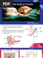 • Attached to cecum by the mesoappendix, which contains the appendiceal artery