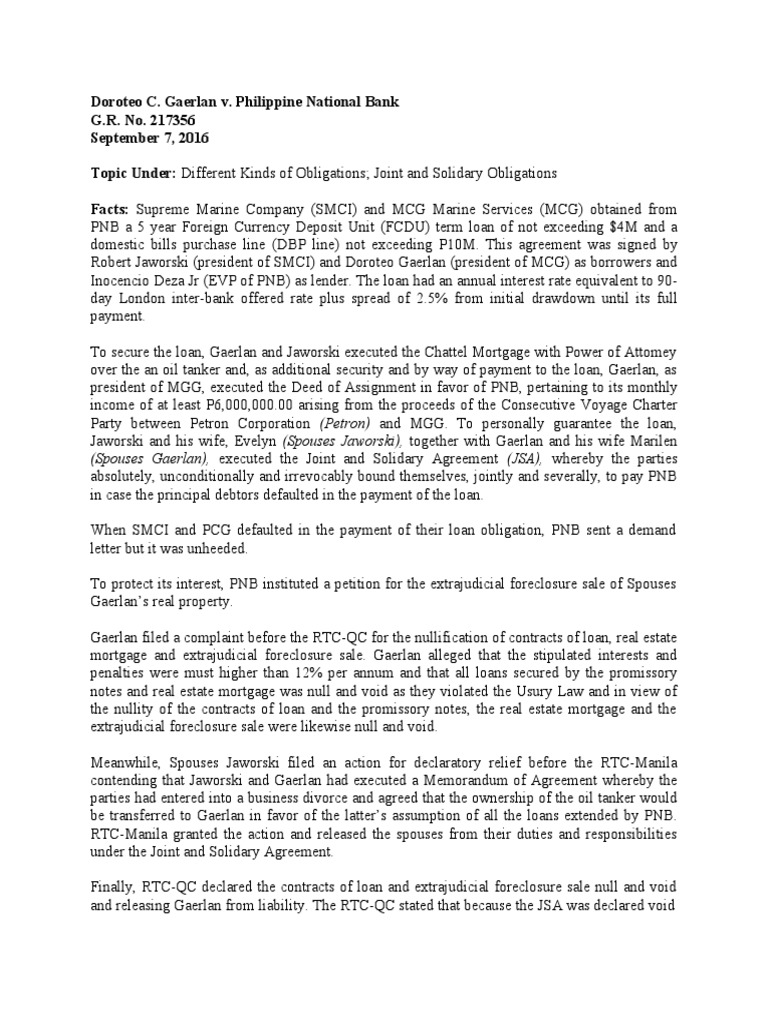 (Spouses Gaerlan), executed the Joint and Solidary Agreement (JSA), whereby the parties