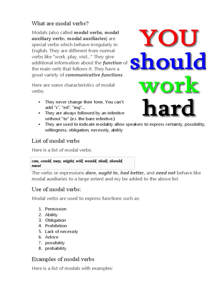 Here is a list of modal verbs: