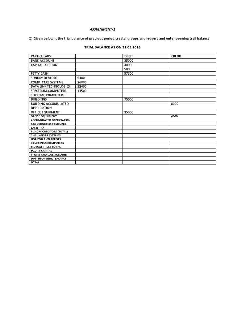 Q) Given below is the trial balance of previous period,create groups and ledgers and enter opening trail balance