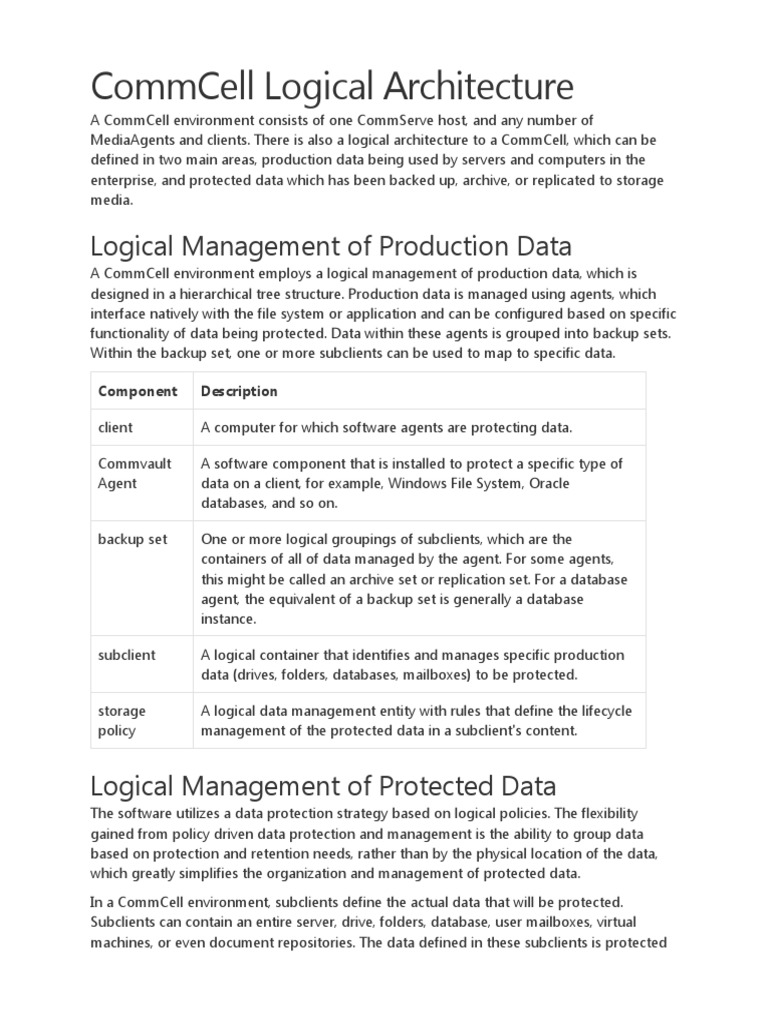 MediaAgents and clients. There is also a logical architecture to a CommCell, which can be
