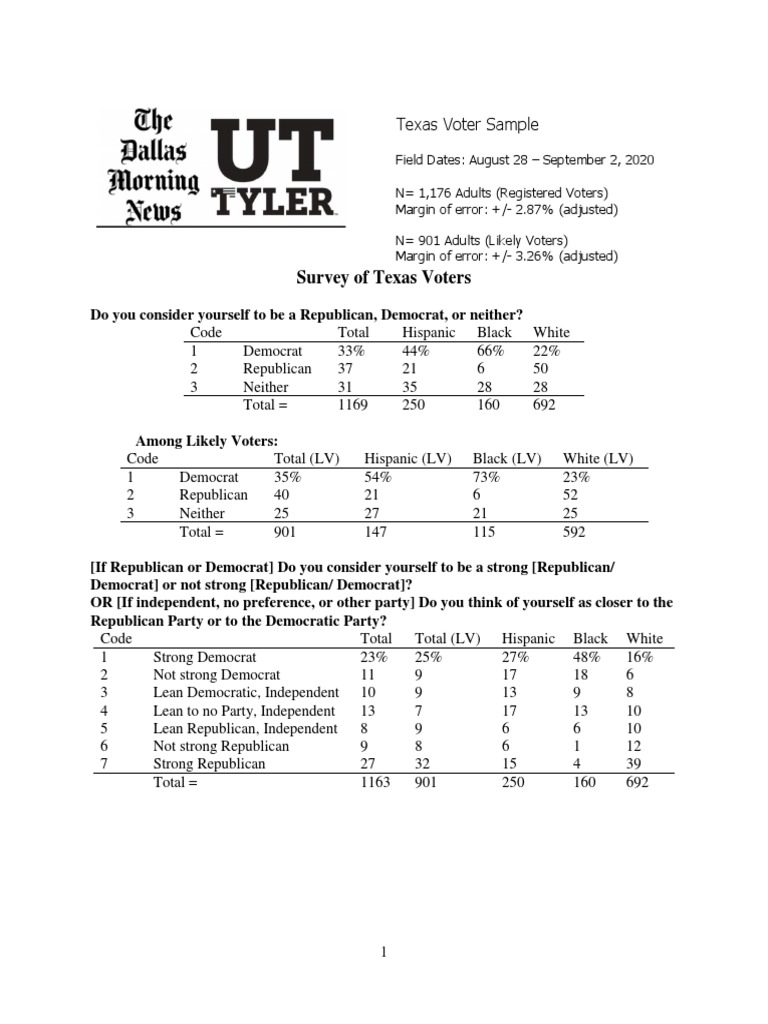 The Dallas Morning News/UT Tyler Poll reflects a statewide random sample of 1,176