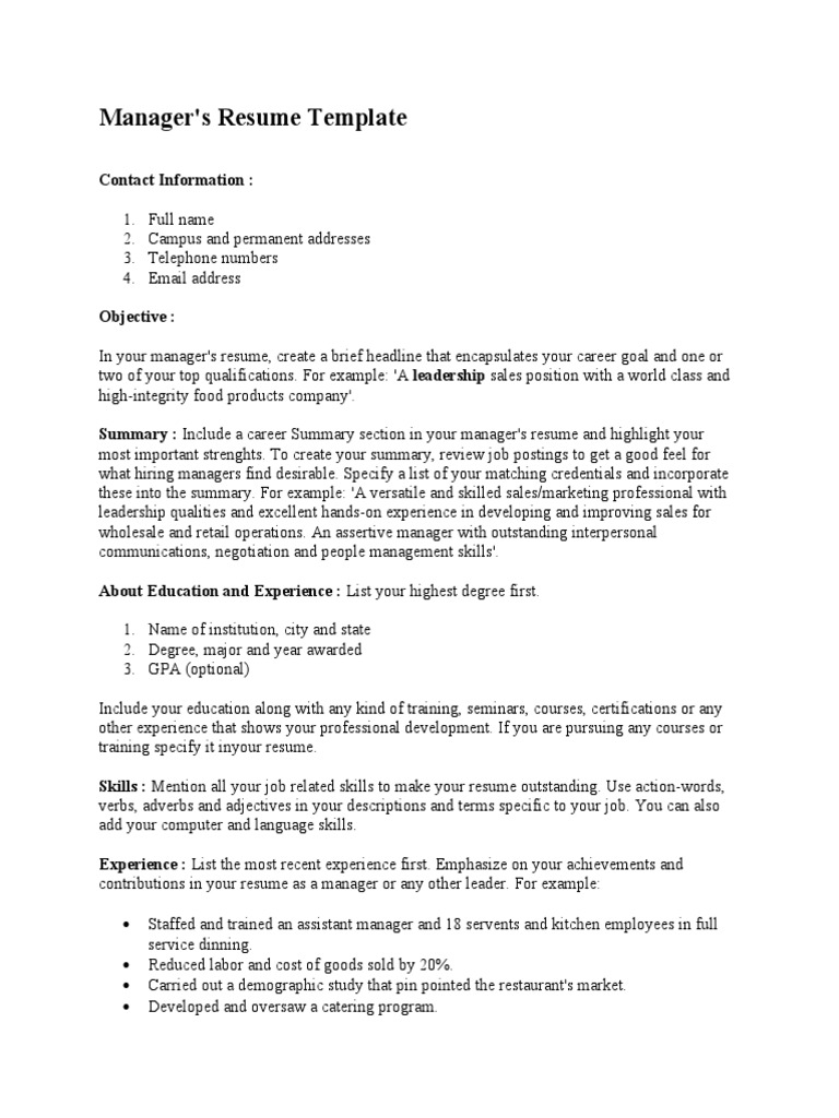 resume for your job application. Visitors can feel free to customize and edit our sample manager