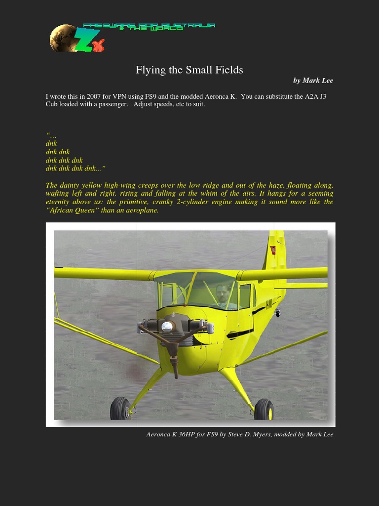 I wrote this in 2007 for VPN using FS9 and the modded Aeronca K. You can substitute the A2A J3