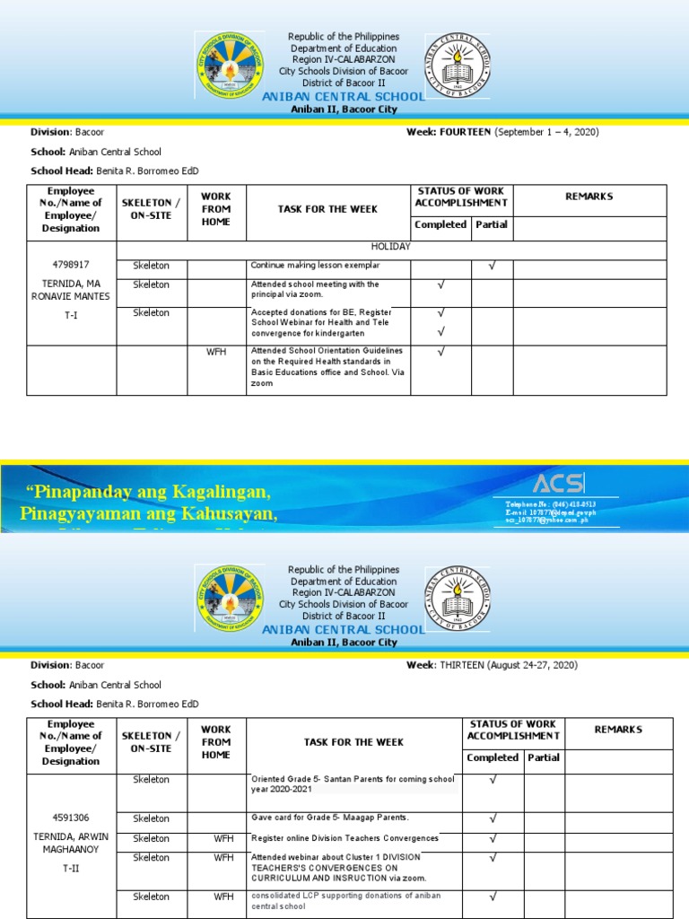 Division: Bacoor Week: FOURTEEN (September 1 – 4, 2020)