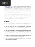 acquisition of Corus and with new Greenfield ventures, Tata Steel has ensured that it has
